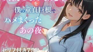 d_740445| 「午後からプレゼンだね。たくさん準備してきたから、頑張らなくっちゃね!」オフィスで働く優しくて面倒見がいい先輩OL・佐藤あかり(25歳)。スタイル抜群で、体にフィットした服装が目のやり場に困るほど魅力的。普段は清楚で仕事のできる彼女だけど、少しドジな一面もあって、そんなギャップが愛おしい。プレゼンを成功させた夜、二人きりで居酒屋へ。「まぁ、とにかく飲も飲も!早く帰らなきゃいけないんだし、急いで飲まなきゃ!」お酒が進むにつれ、普段は抑えていた想いが溢れ出す。「先輩のことが好きですから!!」後輩からの突然の告白に、驚きと戸惑いを隠せない先輩。年齢差、立場の違い、様々な葛藤が頭をよぎる。真剣な眼差しで見つめる後輩に、心が揺れ動く。そして彼女いない歴=年齢と知った瞬間、酔いも手伝って、ある決意が芽生える。他の女性との比較をされる心配もない。まっさらな彼を自分色に染められるチャンス。年下の後輩をリードしてあげようという、普段は見せない大胆な一面が目覚める。お酒の勢いでホテルへ向かう二人。「脱がせてもらっていいかな...」部屋に入ると、誘惑的な仕草で迫る先輩。教えてあげるつもりで余裕を見せていたが…初体験の後輩が想像を超える逸物の持ち主だったことに気づいた瞬間、立場が逆転する。予想外の快感に声を上げてしまう先輩。普段は余裕のある彼女が、夜が更けるにつれて虜になっていく。オフィスでは想像もできない彼女の妖艶な表情と、響き渡る甘い声…。「後輩をリードしてあげよう」と思っていたのに、気づけば逆に虜にされていく先輩OL。会社での何気ない日常、プレゼンの成功、夕暮れのオフィスでの二人きりの時間、居酒屋での告白、そしてホテルでの一夜。普段は真面目で優しい先輩OLが見せる、蠱惑的な素顔と官能的な姿をお楽しみください。仕事を頑張る先輩との甘く背徳的な一夜の物語。■仕様【画像サイズ】1024×1536本編 セリフ付きCG 75枚 セリフ無しCG 73枚おまけ 352枚おまけとして付けたCGは本編では使われなかったものですが、本編同様の高品質なCGです。※本商品は画像生成AIによって生成されています。※作品は全てフィクションであり、架空の人物を描いています。※登場人物は18歳以上となっています。※人物の顔や体の綺麗さを優先しているため、細かい部分にAI特有の乱れが出る場合がございます。ご了承くださいますようお願いいたします。
